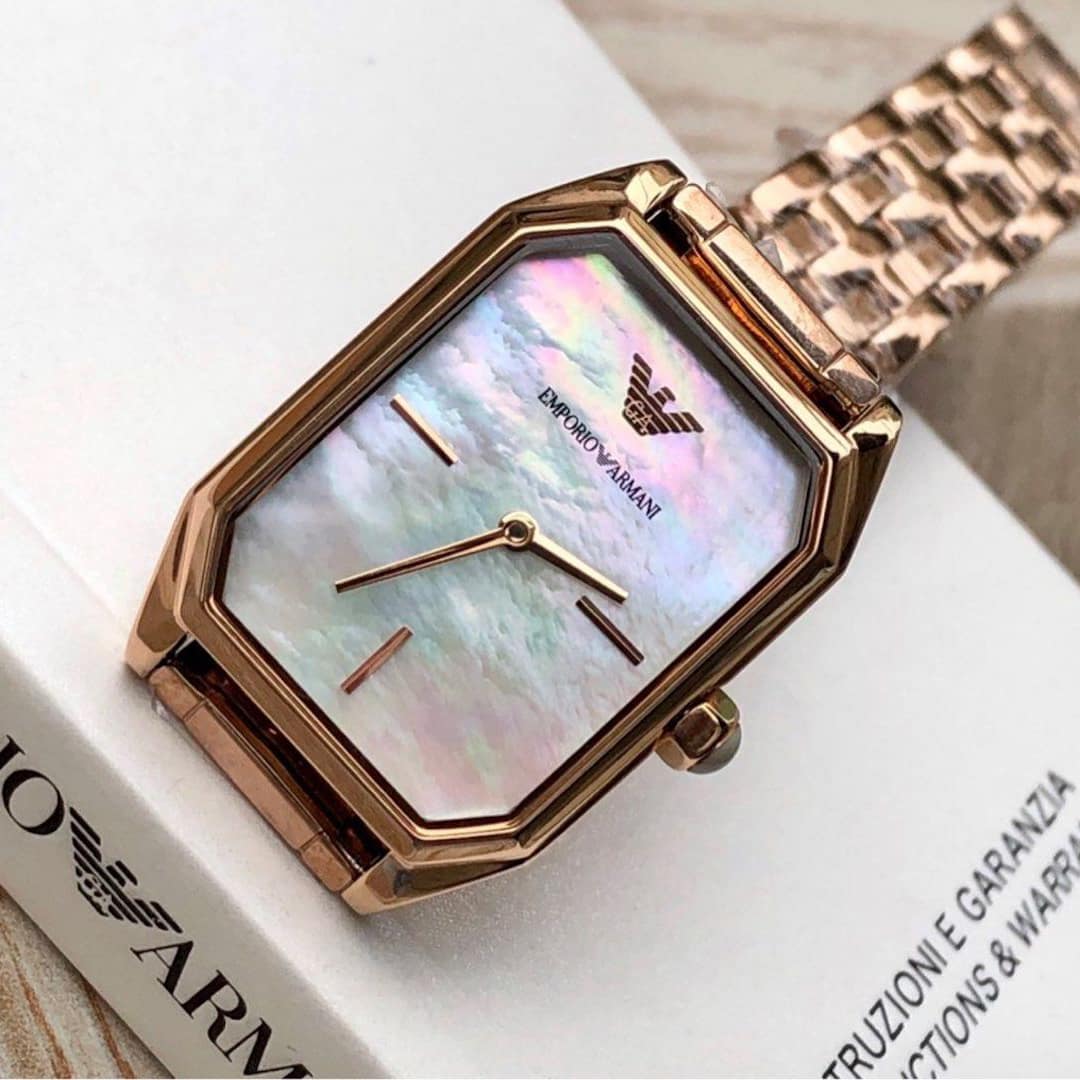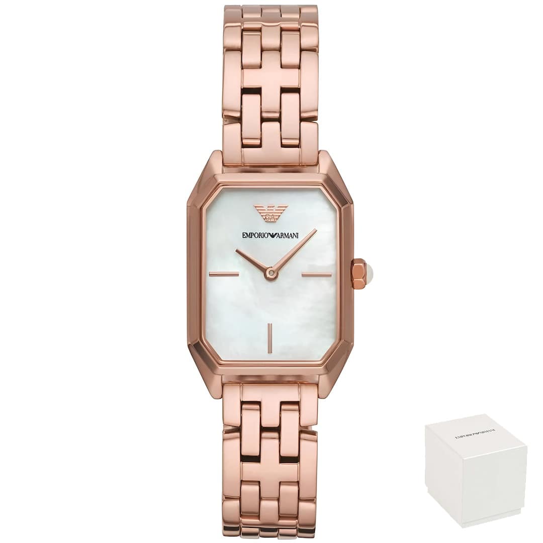 Ženski ručni sat Emporio Armani AR11147 vrhunski je proizvod koji odiše elegancijom i minimalističkim stilom. Njegov pravokutni brojčanik zaista je impresivan. Izrađen od prekrasnog mother of pearl materijala, sat stvara čarobnu igru boja i uzoraka koji se svjetlucaju ovisno o kutu gledanja. S bezvremenskom ljepotom dodaje sjaj i šarm ovom već izvanrednom satu.