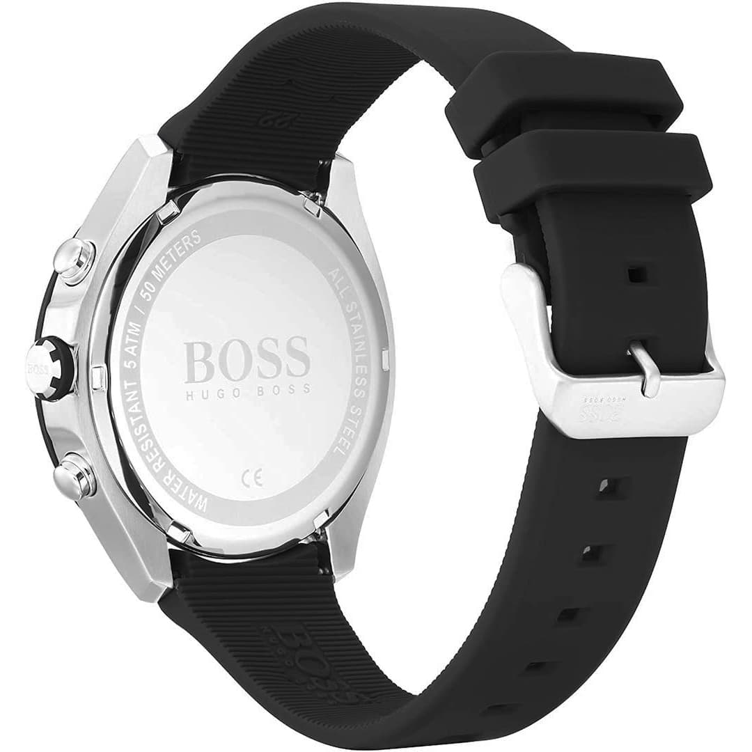 Pomaknite svoje granice i poboljšajte performanse. Hugo Boss Velocity sat je za one koji iz dana u dan nastoje nadmašiti najbolje od najboljih. Ovaj sportski kronograf sat ima crno kućište promjera 44 mm. Izrađen je od nehrđajućeg čelika prekrivenog ionskim premazom, koji osigurava još veću čvrstoću i otpornost na ogrebotine. Izgled sata upotpunjuje natpis Hugo Boss na silikonskom remenu i kopči remena.