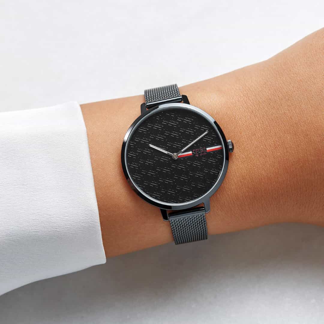 - Minimalistički brojčanik: Posebno dizajniran brojčanik bez brojeva, s prepoznatljivim logotipom Tommy Hilfiger, naglašava moderan dizajn.